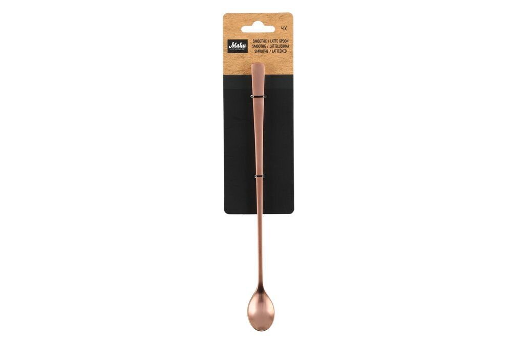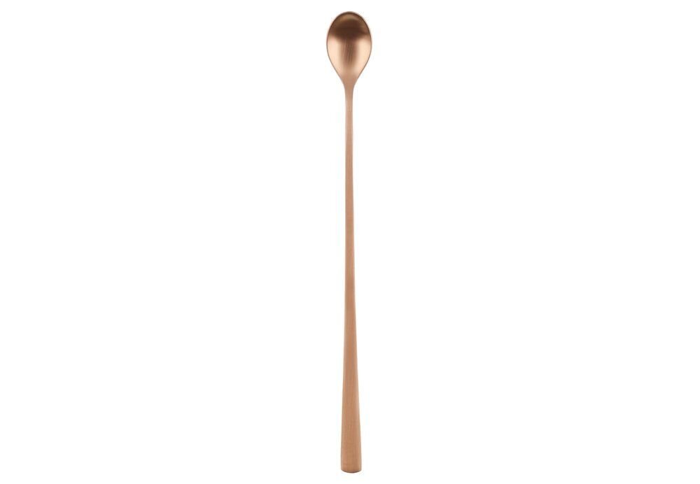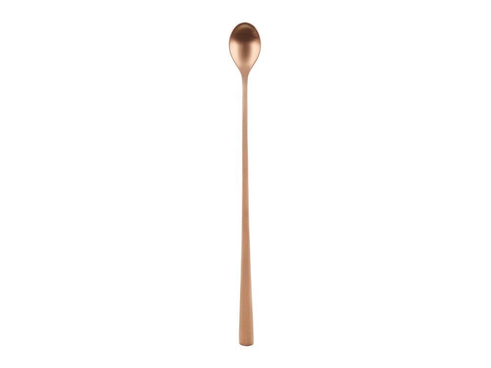 Dlouhá míchací lžička Maku v růžovém zlatě je univerzální pomocník do každé kuchyně i domácího baru. Skvěle se hodí na míchání smoothie, latte, ledové kávy nebo koktejlů – a to jak při přípravě, tak při samotném servírování.