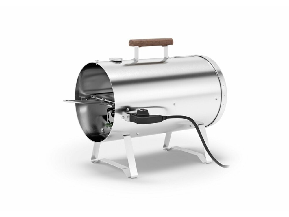 Výkonná udírna z nerezové oceli s plynule nastavitelnou teplotou a vestavěným teploměrem. Součástí balení jsou dva prostorné rošty, které umožňují udit maso, ryby, drůbež, sýr, zeleninu nebo dezerty. Víko udírny lze při vyjímání roštu pohodlně zavěsit na rukojeť.