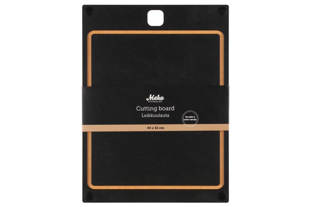 Krájecí prkénko Maku je vyrobeno z odolného a k nožům šetrného papírového kompozitu, který zajišťuje dlouhou životnost i pohodlné každodenní používání. Díky silikonovým nožkám drží prkénko pevně na místě a neklouže při krájení.