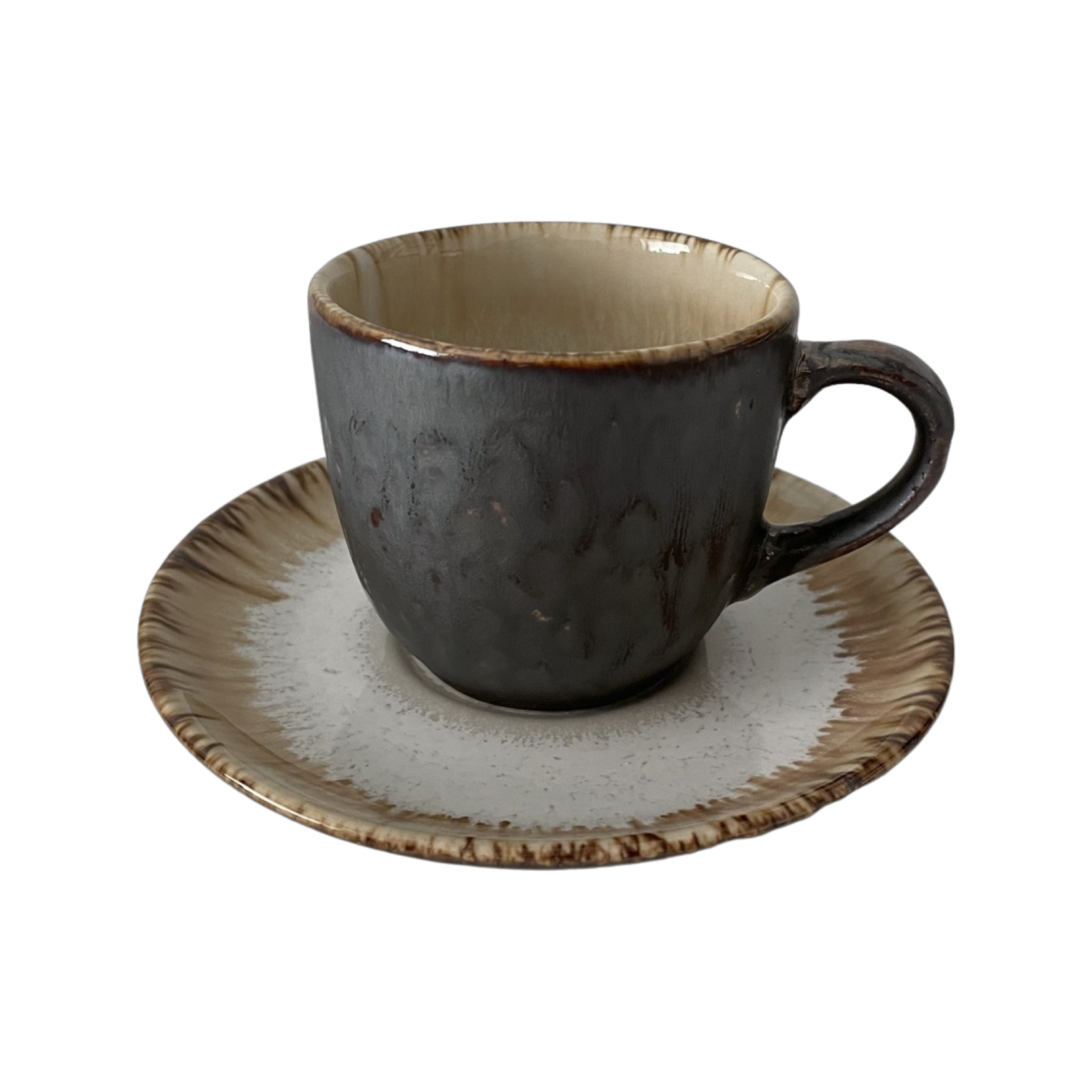 Stylový a elegantní šálek na espresso z kolekce Dolomit od značky Kera Ceramika zaujme svým krémovo-hnědým odstínem s jemným popraskaným glazováním. Ručně zdobený design a matný povrch z vnější strany dodávají každému kusu jedinečný charakter.