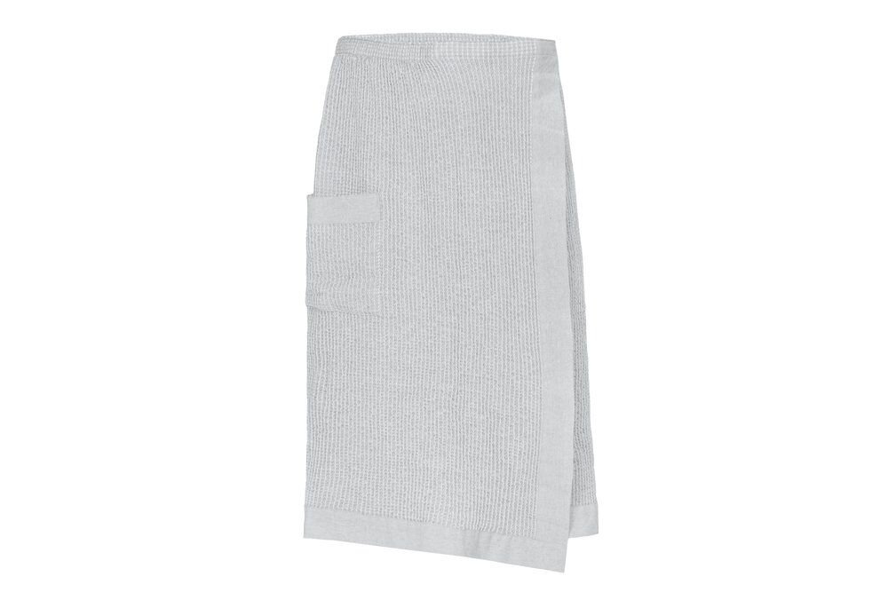 Zavinovací kilt je neformálním doplňkem pro saunování. Recyklovaná bavlněná textilie pro saunu se vyznačuje jemností a vokšinovou strukturou látky. Zapínání na suchý zip.