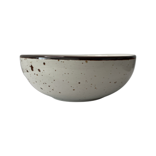 Servírovací salátová miska Kera, Ø16 cm, z kolekce Rustic od značky Kera Ceramika okouzlí svou jednoduchostí a návratem k tradičním hodnotám. Jemný krémový odstín s nepravidelným tečkováním a tmavším zvýrazněním okrajů dodává misce autentický rustikální charakter.