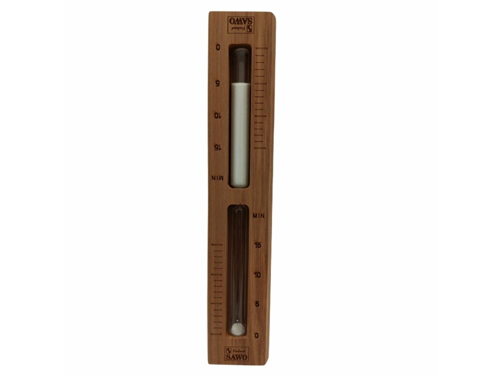 - Přesýpací hodiny s bílým pískem z cedrového dřeva.