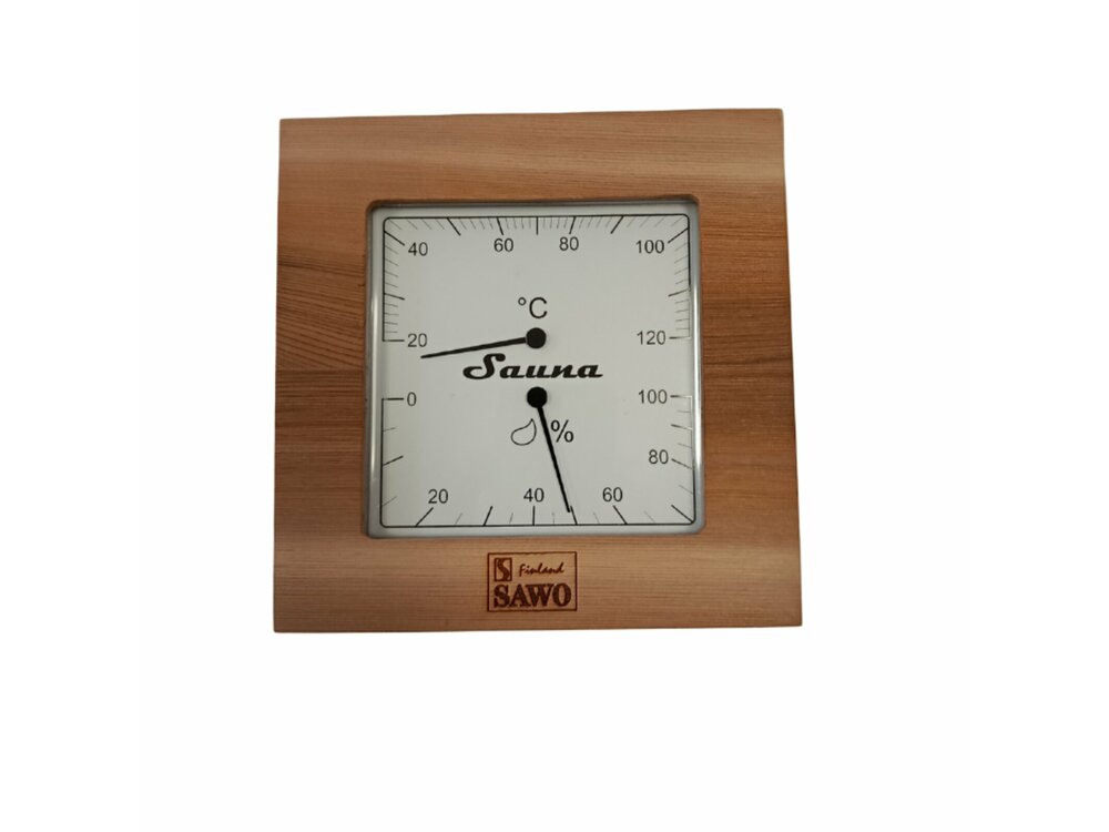 - Dřevěná stanice z cedrového dřeva pro měření klimatu v sauně.