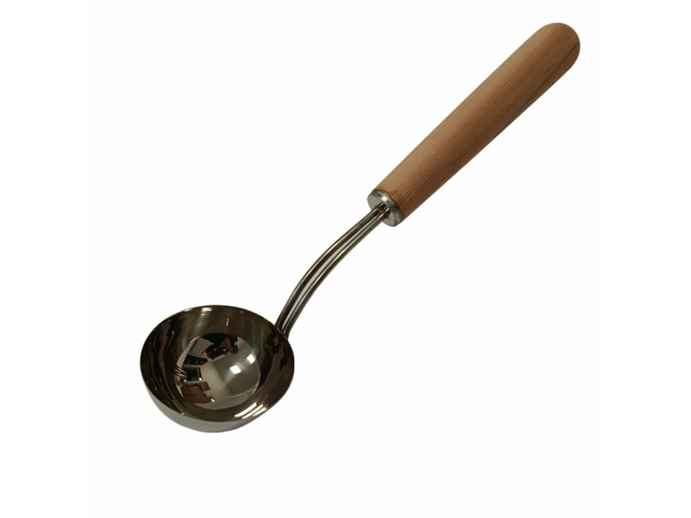 - Nerezová naběračka z úchytem z cedrového dřeva. Délka 40 cm.
