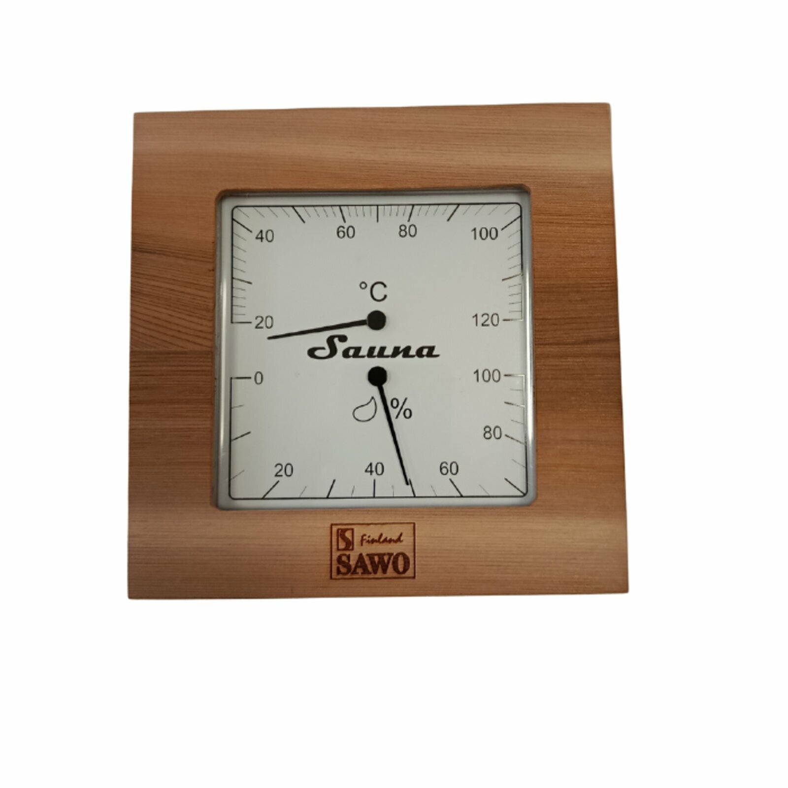 - Dřevěná stanice z cedrového dřeva pro měření klimatu v sauně.