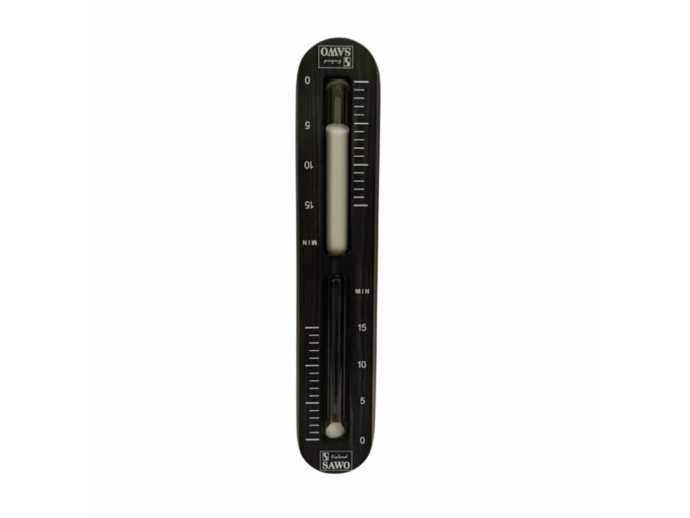 Sada obsahuje vědro s naběračkou, kombinovaný teploměr s vlhkoměrem a přesýpací hodiny do sauny.